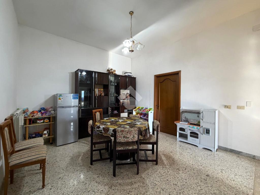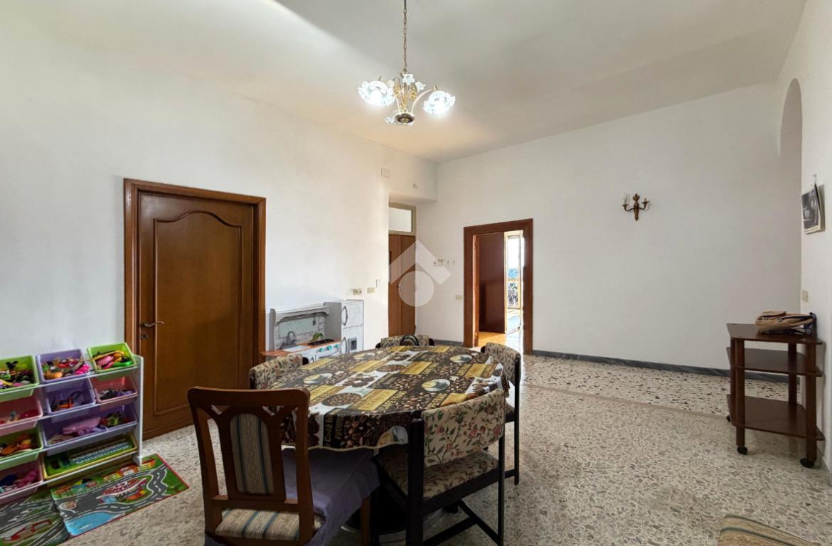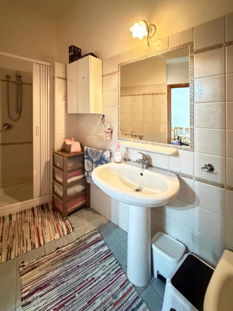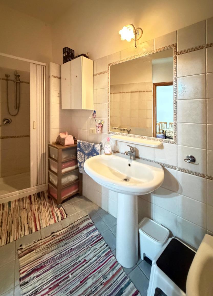Varcato il portoncino di ingresso una scala ci conduce al primo piano dove entrando troviamo ad accoglierci l’ampio soggiorno, la cucina separata e abitabile con uscita su un piccolo balconcino; un corridoio ci accompagna nella zona notte composta da due camere matrimoniali con uscita sul balcone e una terza cameretta; infine, un primo bagno cieco con doccia. L’immobile è dotato anche di un secondo wc, esterno all’abitazione, collocato sull’androne delle scale, completo di vasca da bagno.